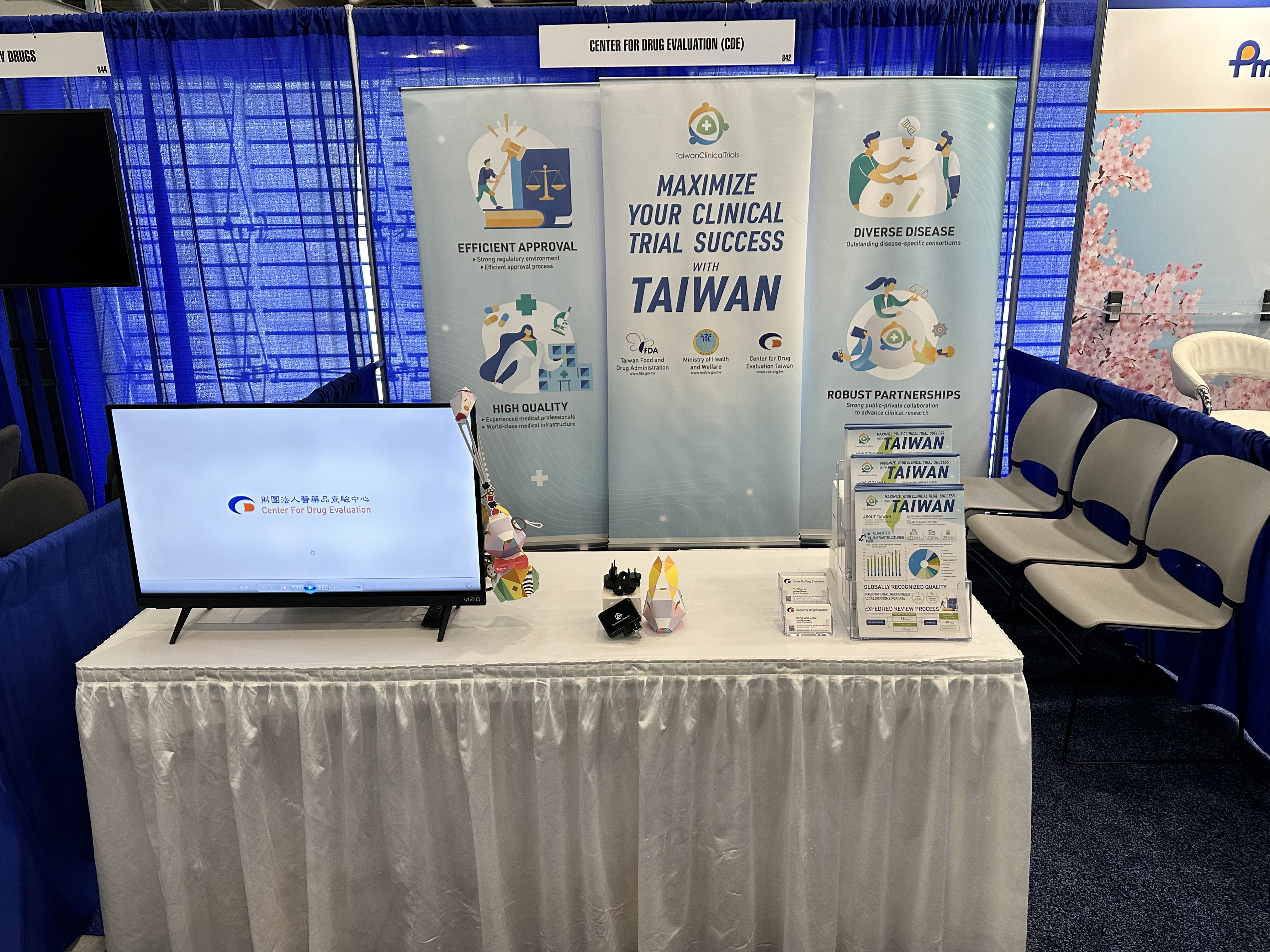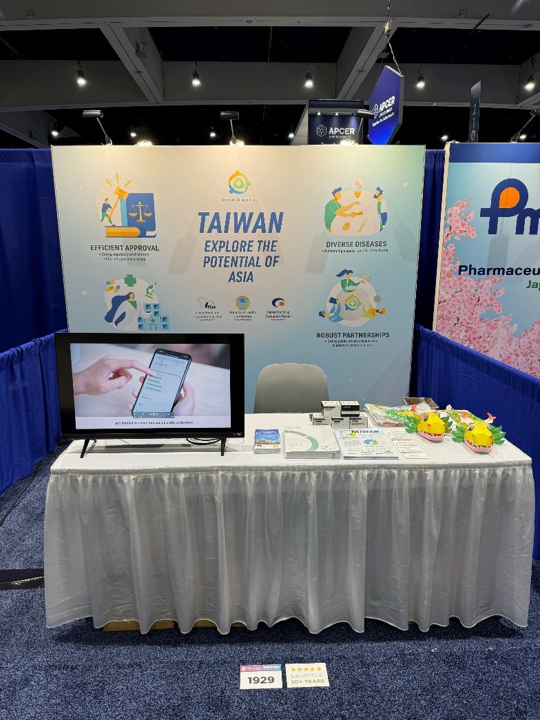 本次參與會議主要包括,設立「Taiwan: Explore The Potential of Asia」主題展示攤位,推廣台灣臨床試驗環境與台灣政府生技產業推動方案成果,強化政策推動成果及宣導,具體呈現台灣生技產業及臨床試驗的充沛能量。由查驗中心藍月妏資深專案經理、陳政吉審查員發表「Facilitating the Accessibility of Orphan Drugs: Analysis of Orphan Drug Cases from 2018 to 2023 in Taiwan」、「Taiwan's Pediatric or Rare Severe Disease Priority Review Voucher Program: Enhancing Novel Drug Accessibility」等主題壁報論文。賴怡君資深組長受邀擔任panelist,分享ICH E17(MRCT)於臺灣實施現況:Updated Status of Multiregional Clinical Trials Based on ICH E17 Guideline: 5 Years After the Implementation。並透過參加大會所舉辦之研討會與論壇,包含藥品法規國際協和、臨床安全及用藥監視、臨床研究開發、法規業務等主題課程,了解國際法規及產業發展趨勢。