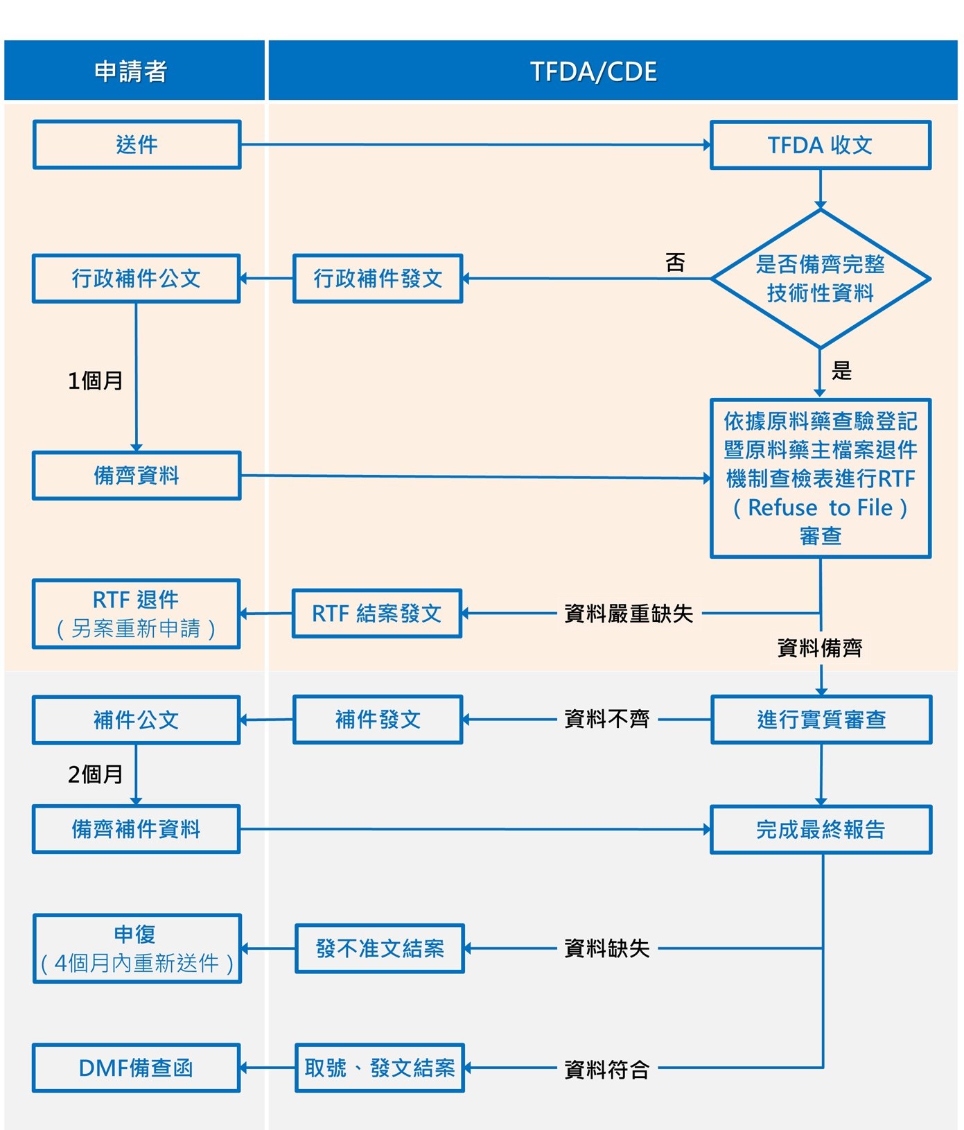 • 原料藥主檔案申請案審查流程: