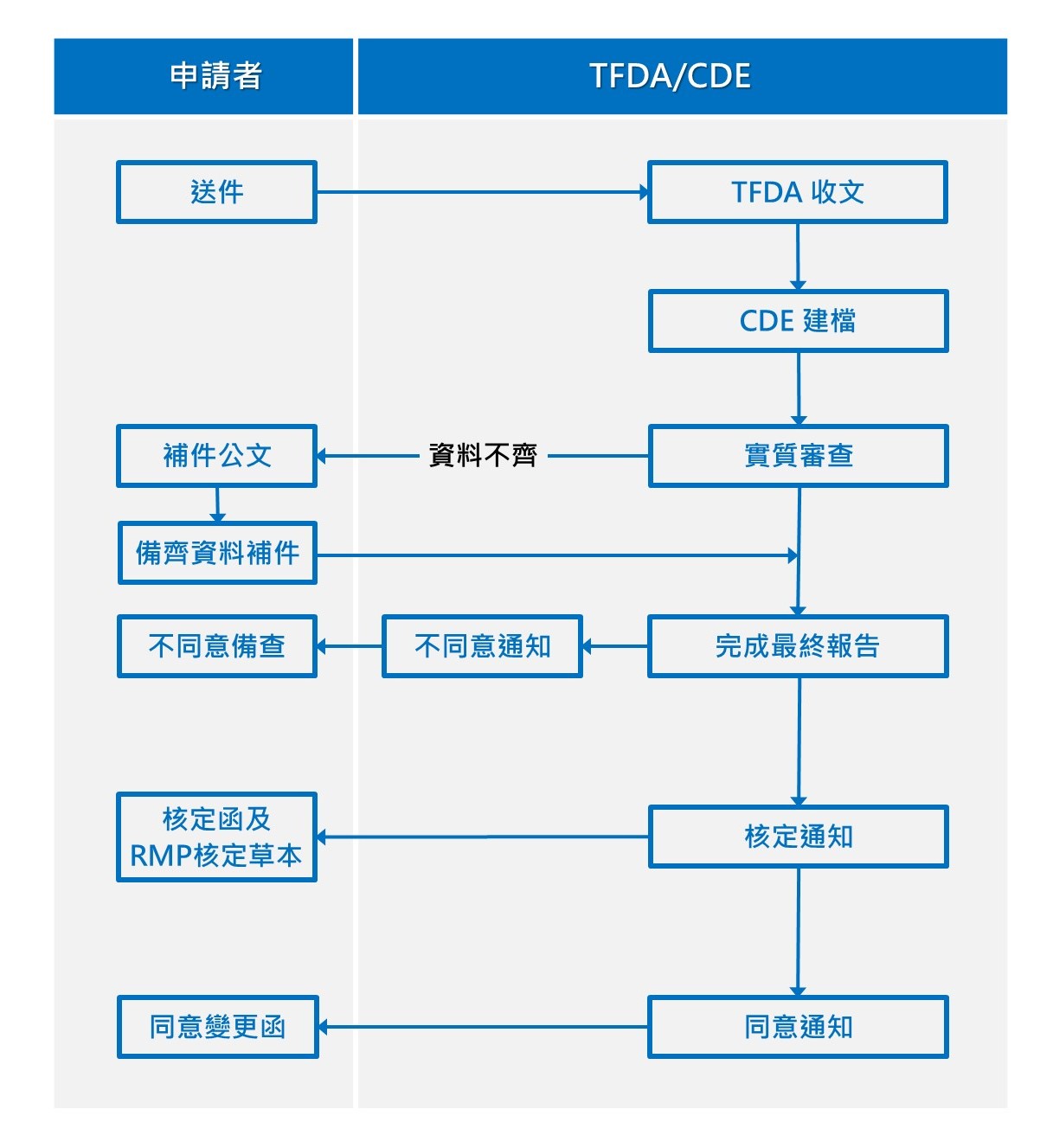 | 新申請案/申復案 | 衛生福利部食品藥物管理署 | 國家生技園區F棟 (地址:11571台北市南港區研究院路一段130巷99號) |