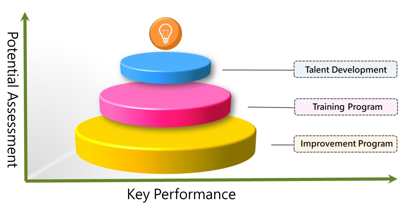 為培育本中心優秀人才、提升核心競爭能力,以進一步促進優秀人才職能發展,我們依據人員之工作績效與潛能來進行評核及分配,熟悉每位成員績效能力,並依照個人表現和潛能來協助個人持續成長發展之作業,同時對於具有高潛力之人才,給予進階培訓計劃,提供職務歷練安排、專業職能與管理職能之培訓,讓同仁能更有效地發揮潛力與貢獻。